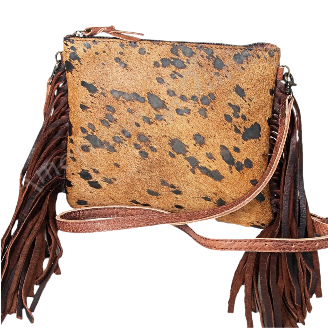 - Brown and spotted black cowhide material.