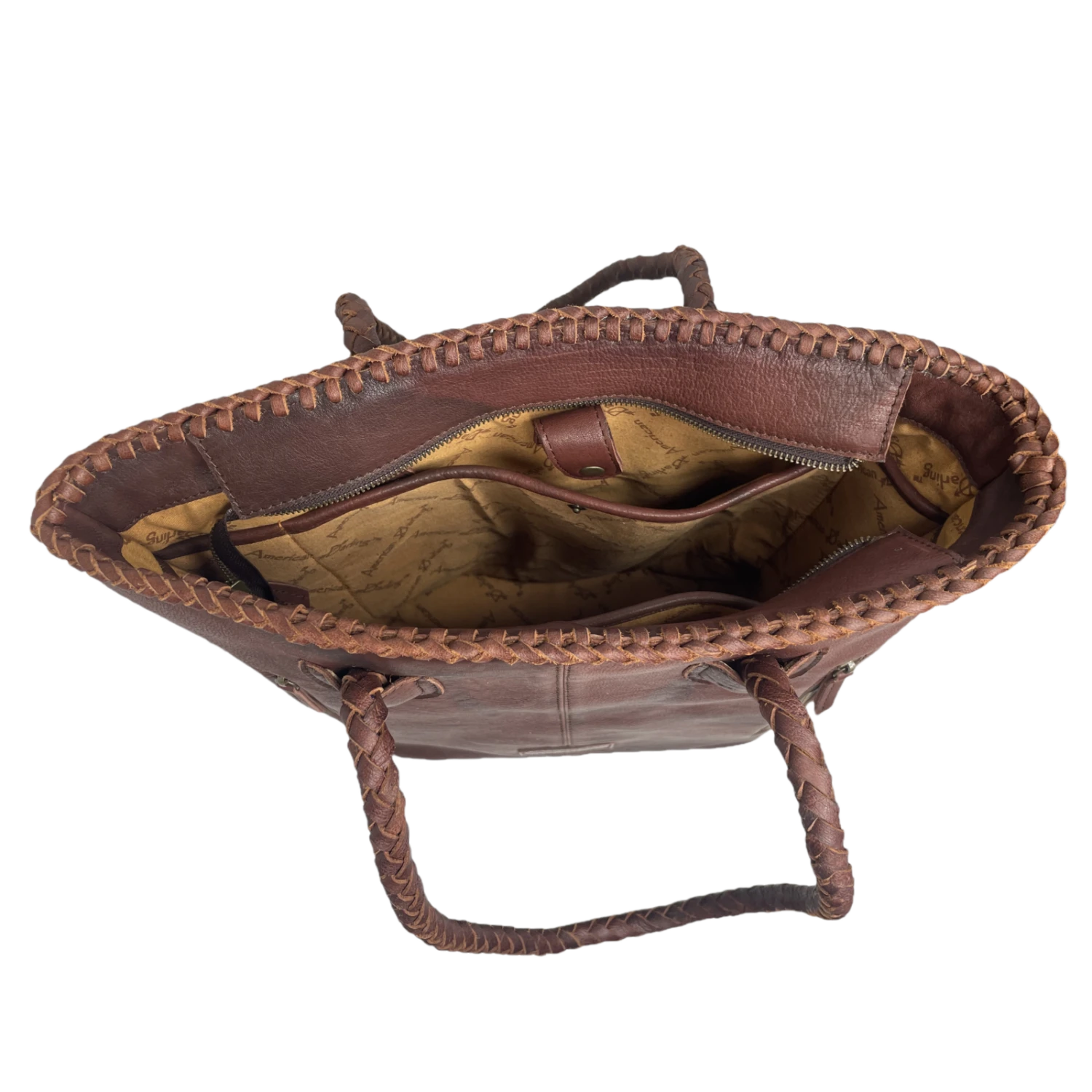 - Braided leather straps.