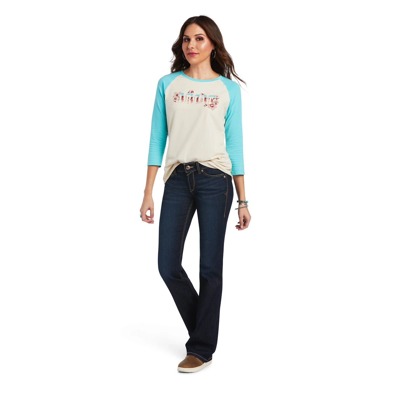 - “Ariat” graphic on chest.