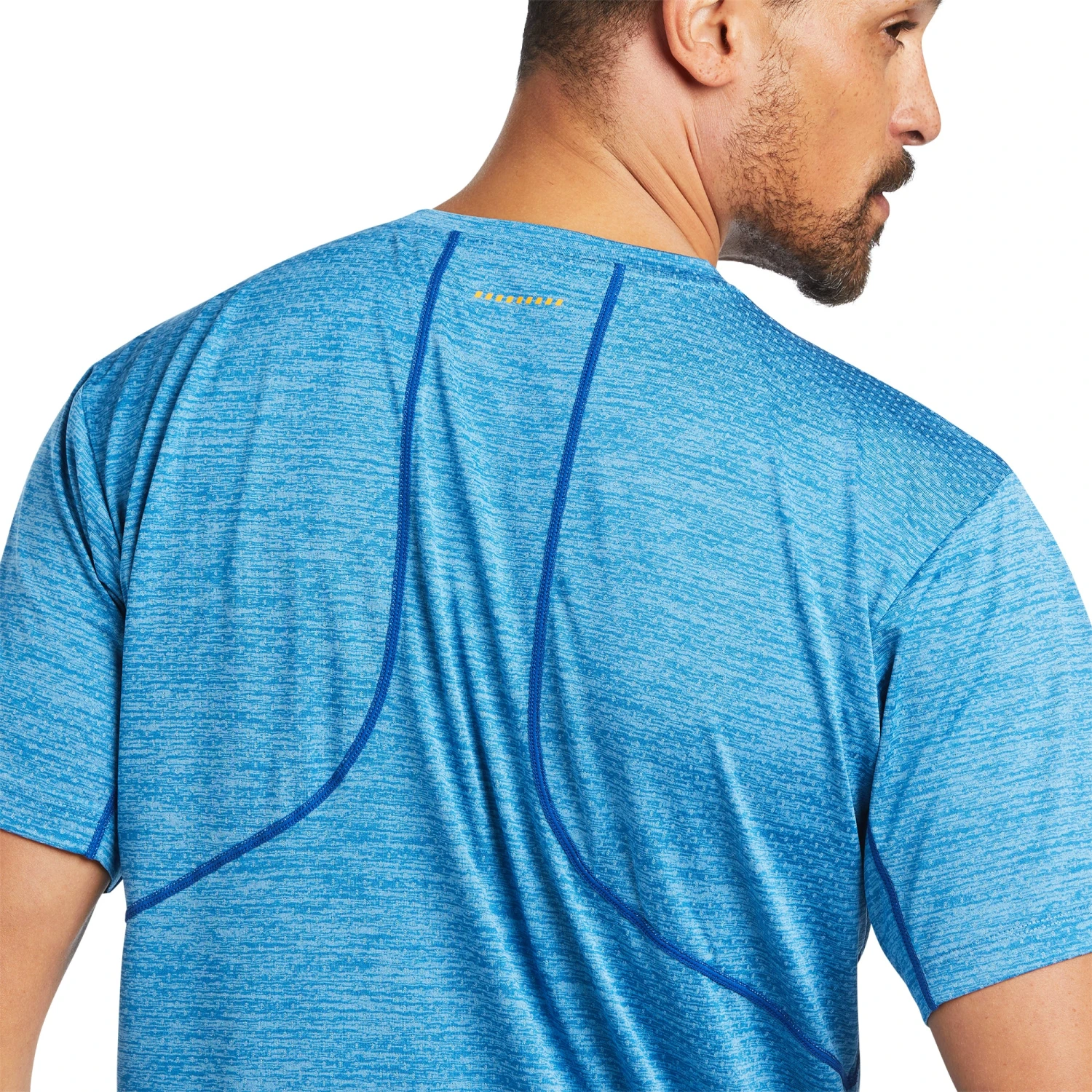 - Bright blue rebar short sleeve tee.