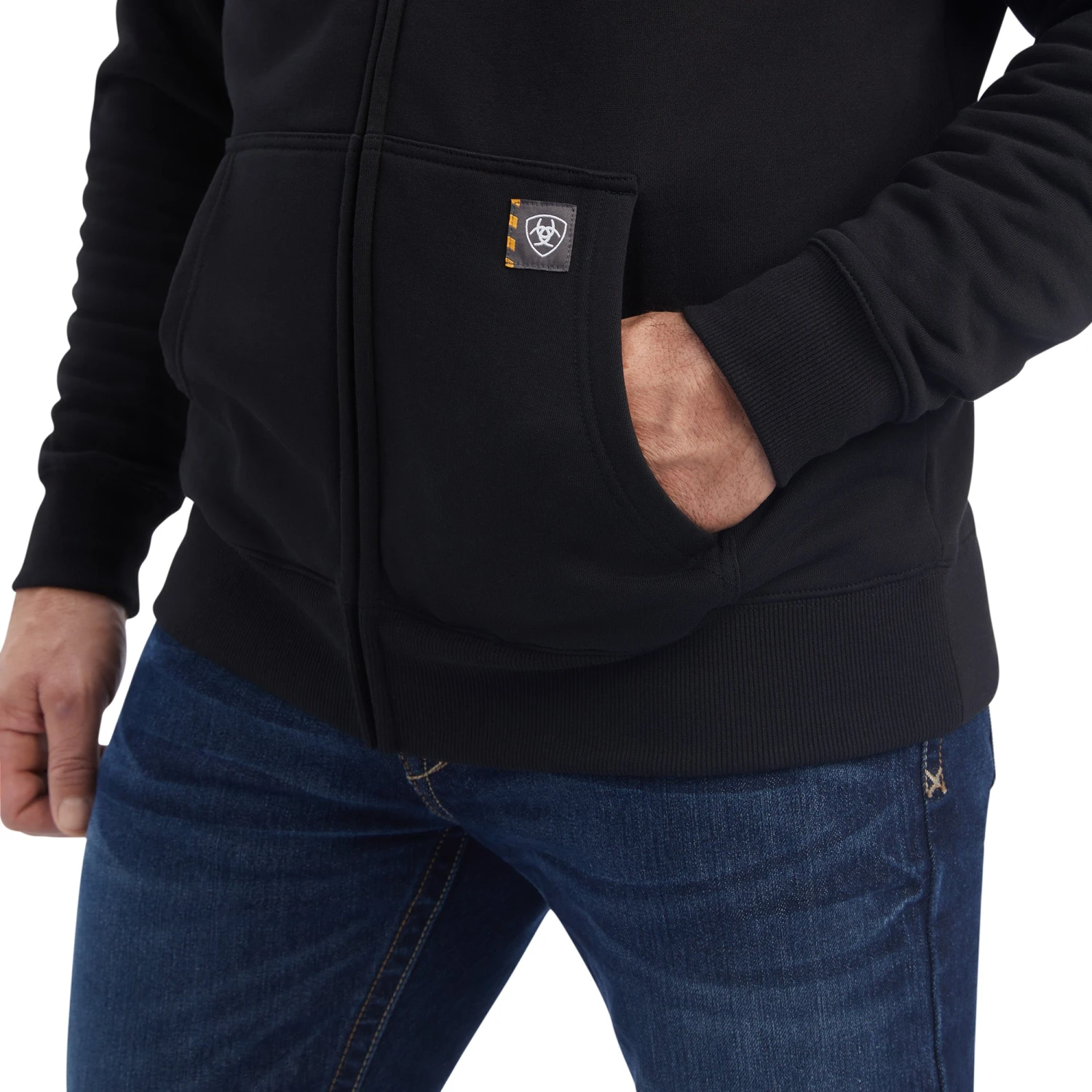 - Ariat logo tag on left pocket.