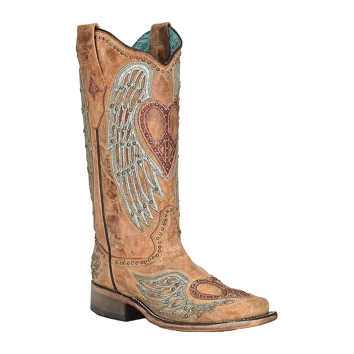 Be the first to review “Corral Boots Corral Ladies Sandy Heart & Wings Tan Square Toe Boots A4313” Cancel reply