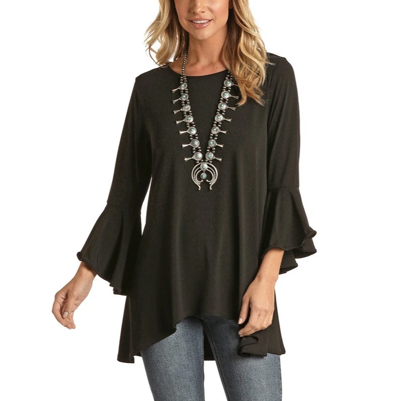 Be the first to review “Panhandles Ladies Hi-Low Bell Sleeve Black Shirt L9T1927-0” Cancel reply