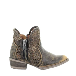 Circle G By Corral Ladies Black Embroidery & Zipper Ankle Boots L5701