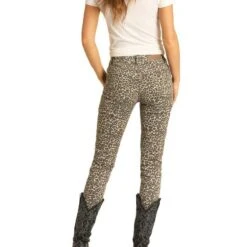 Rock & Roll Denim Ladies Leopard Mid Rise Skinny Jeans W1S4147