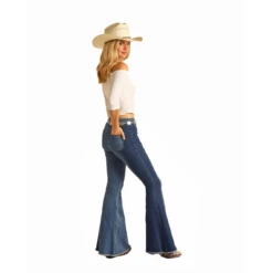 Rock & Roll® Ladies Two Tone Medium Wash Button Bell Bottoms RRWD7PRZU9