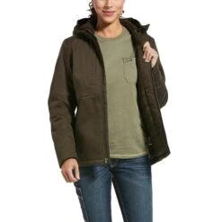 Ariat® Ladies Rebar™ DuraCanvas Insulated Brown Hooded Jacket 10032918