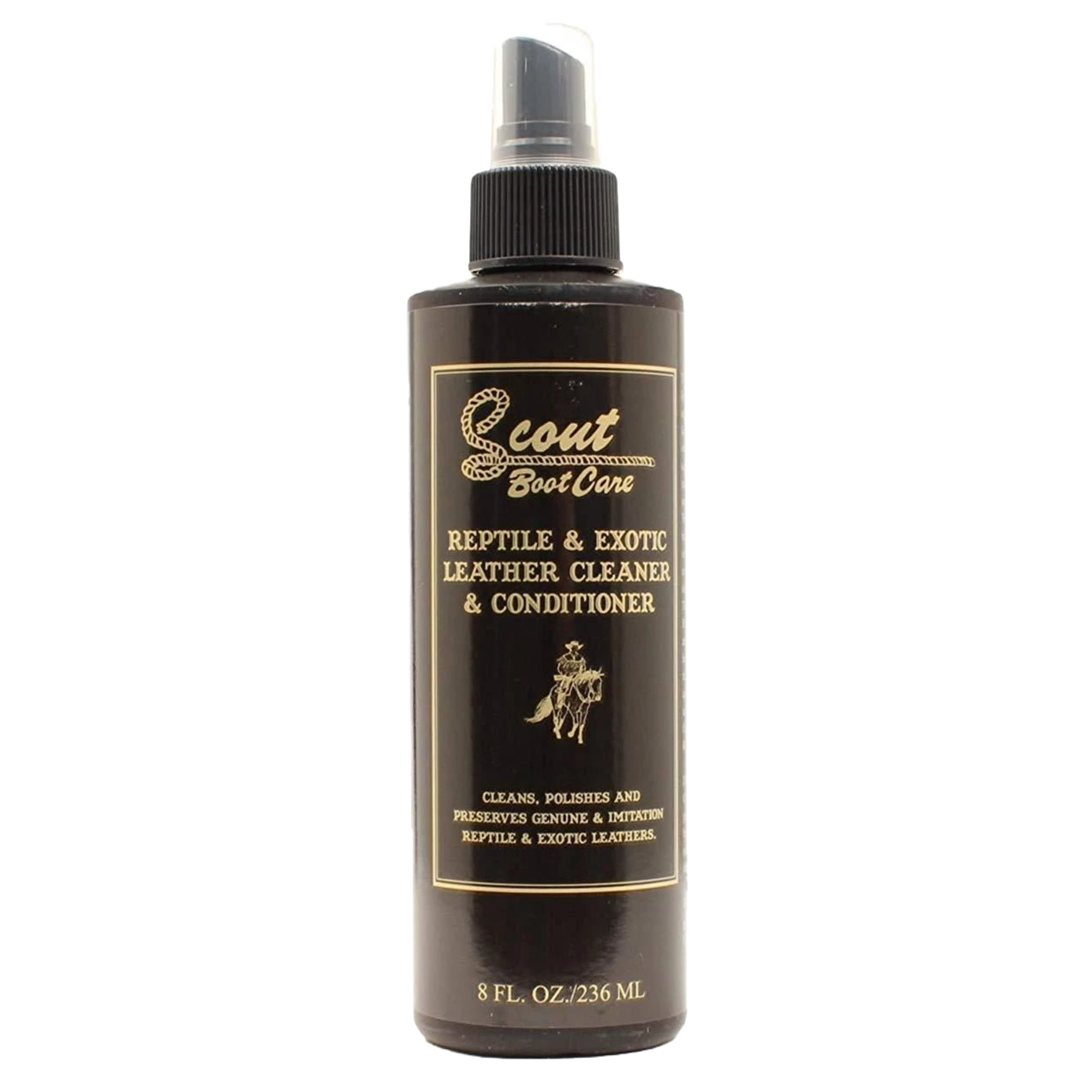 Exotic cleaner quickly and easily cleans, preserves, conditions, and restores exotic skin & imitation reptile leather boots. Expertly performs the vital job of cleaning under exotic skin scales and lubricating hinges.