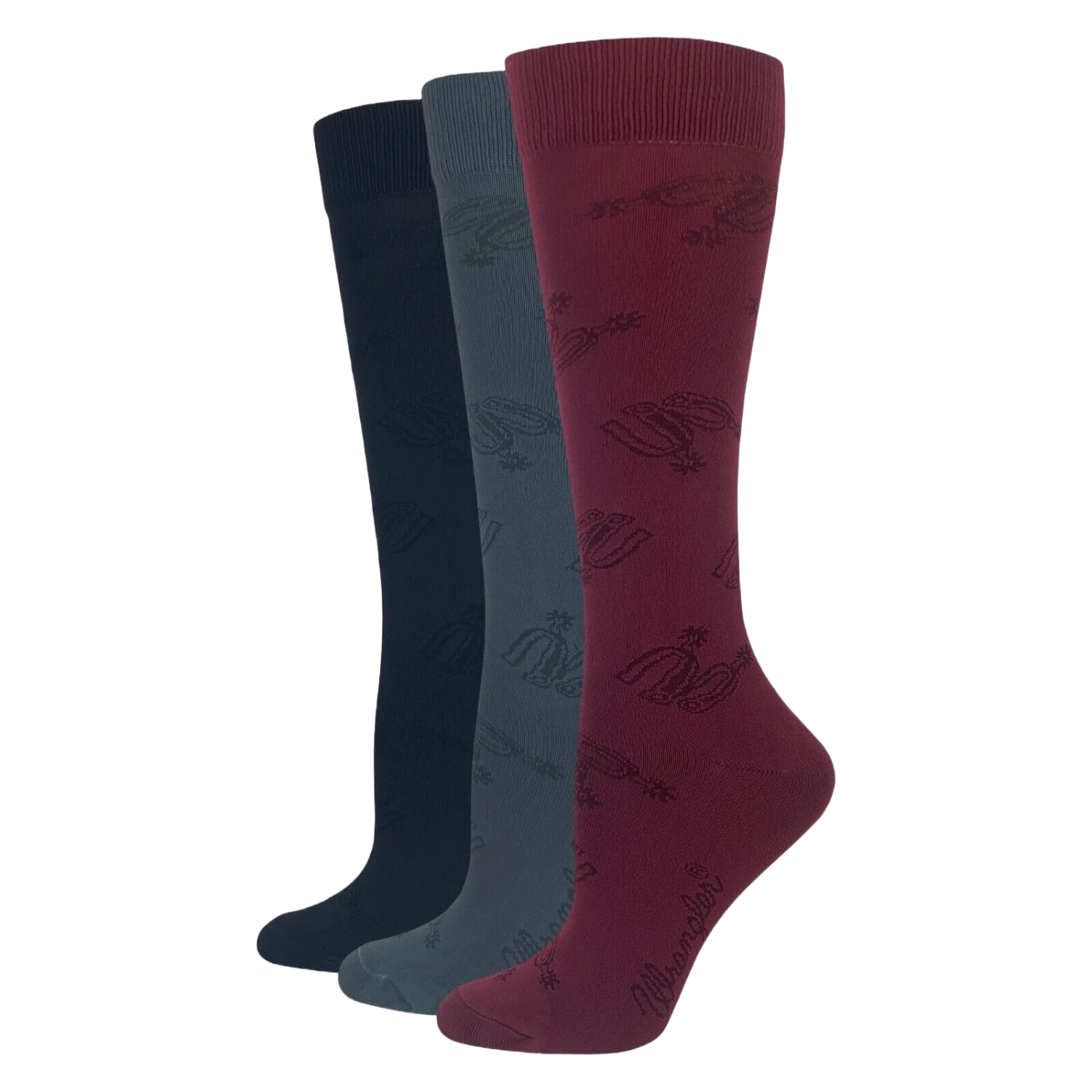 Be the first to review “Wrangler® Ladies 3-Pair Spur Strap Pattern Black/Grey/Burgundy Knee High Socks 00712-7000-MED” Cancel reply