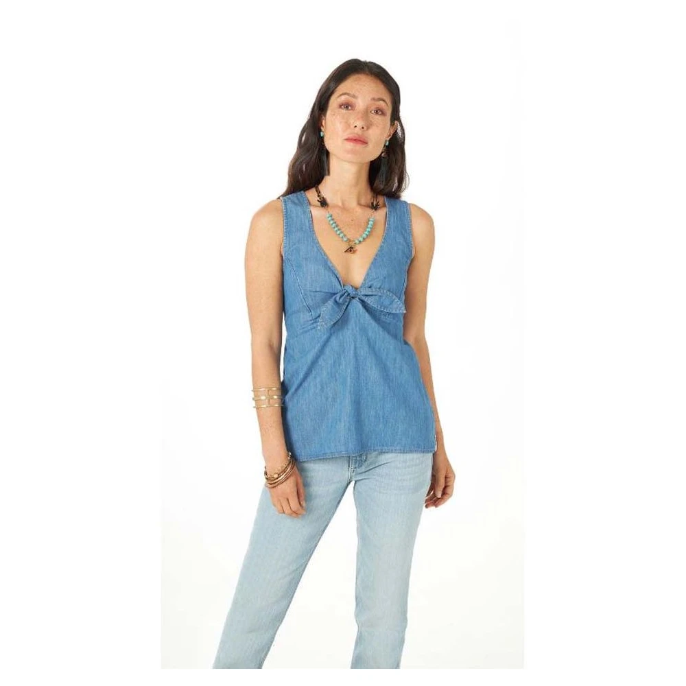 - Medium wash woven tank.